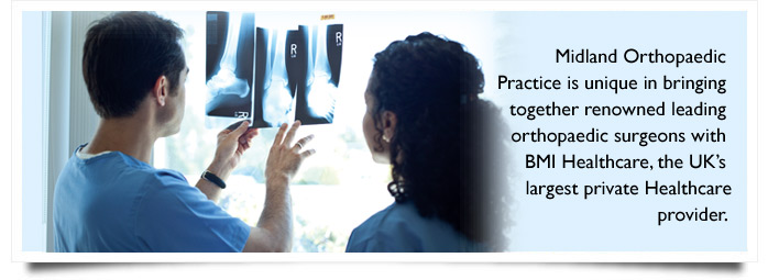 Midland Orthopaedic Practice is unique in bringing together renowned leading orthopaedic surgeons with BMI Healthcare, the UK’s largest private Healthcare provider.